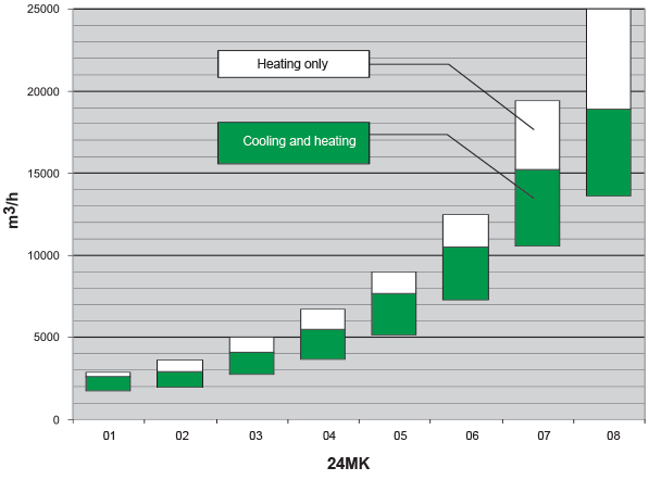 سری هوارسانهای 24MK شرکت MEKAR یک الگوی نوین برای کاربری های خاص بوده بطوریکه طراحان در یک قالب استاندارد و با ابعاد و سایز محدود و کوچک انتخاب دستگاه هوارسان می نمایند. این هوارسانها در 8 سایز و از ظرفیت هوادهی 1700 تا 25000 مترمکعب و با فشار حداکثر 1000Pa تولید میگردد.
